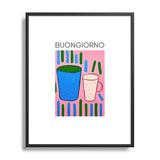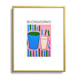 Mambo Art Studio Tea Coffee cups Buongiorno Metal Framed Art Print