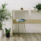 Saddle up, (little) partner. The Deny Designs counter stool uses all the space-conscious, design-forward styling of the bar stool, but with a slightly shorter frame. Sleek, gently curved steel aston legs (available in black or gold) combine with the faux-leather upholstery for a modern yet unassuming stool. Select from our curated array of designs to match whatever your taste may be. And the best part? Every purchase pays the artist who designed it—supporting creativity worldwide.