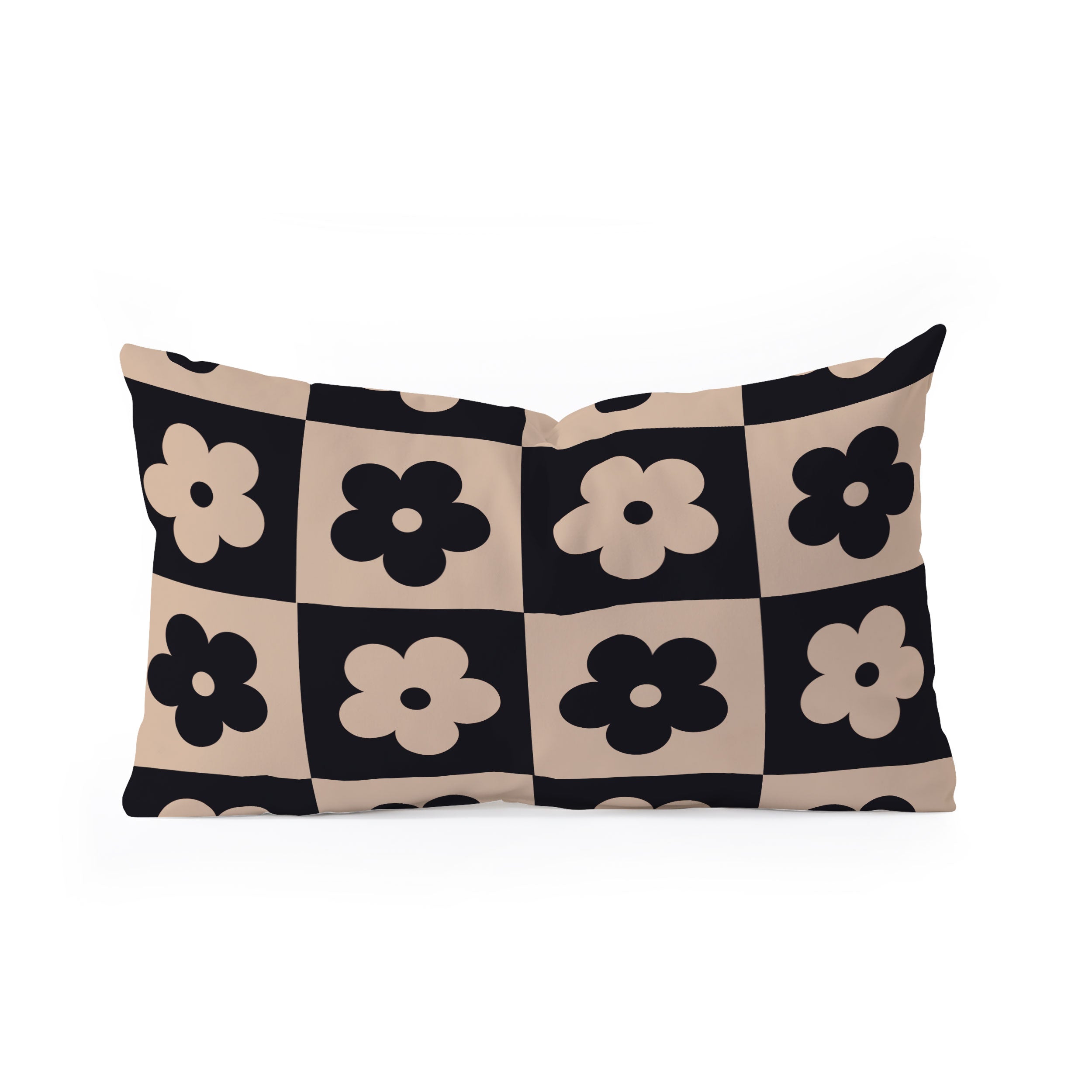 MariaMariaCreative Bloom Check Tan Oblong Throw Pillow