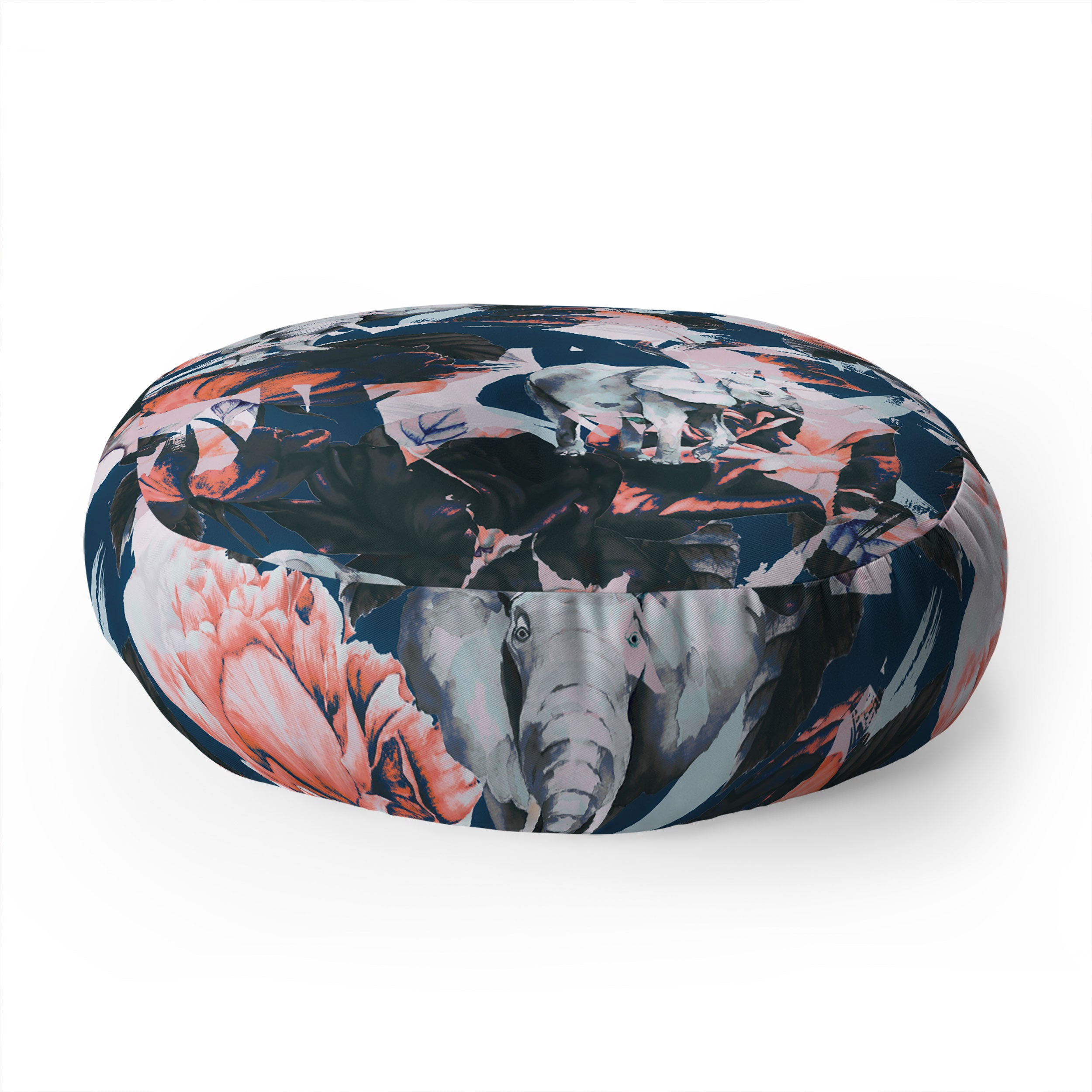 Marta Barragan Camarasa Elephants in the rose bushes I Floor Pillow Round