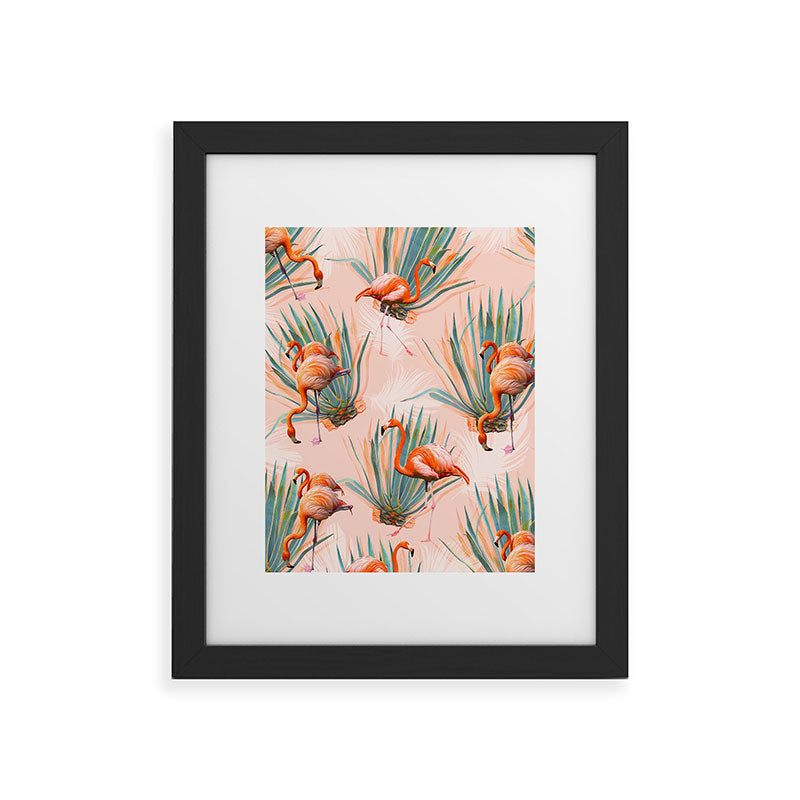 Marta Barragan Camarasa Flamingos pattern with cactus Framed Art Print