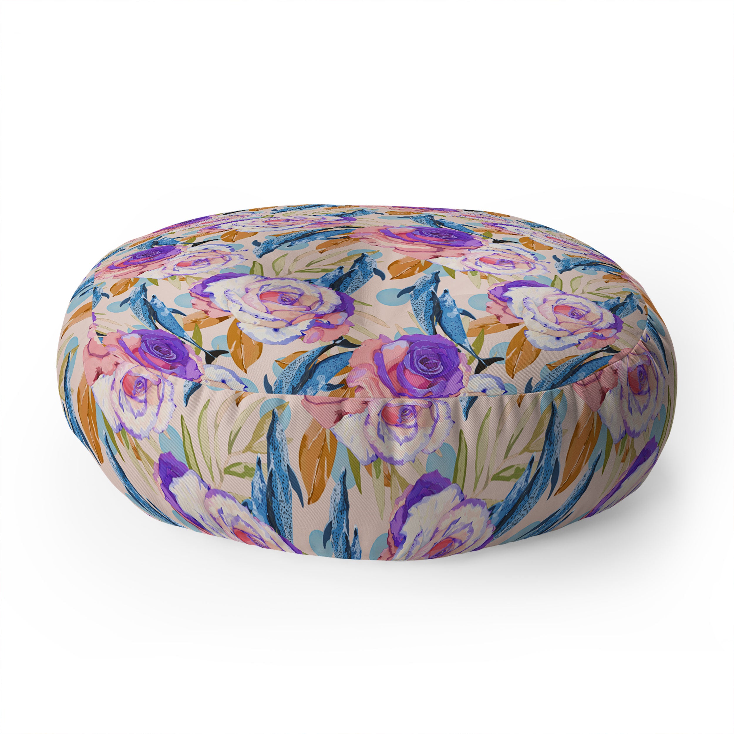 Marta Barragan Camarasa Mini dolphins in rose bushes Floor Pillow Round