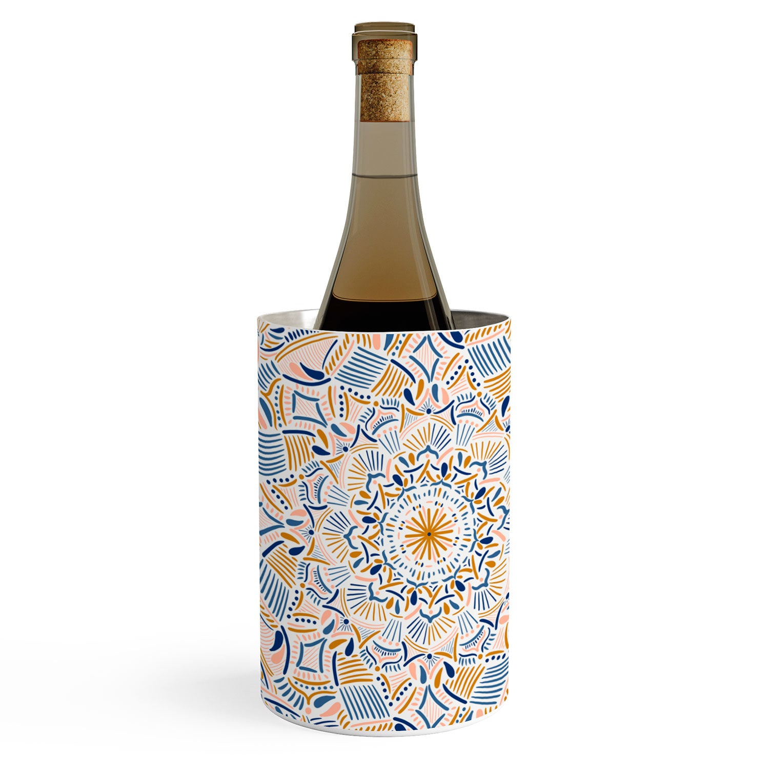 Keep the party going. The Deny Designs 57 oz wine chiller keeps a wine bottle cool for hours—simply slide the bottle into the canister and enjoy. Made from dishwasher safe stainless steel, they feature a curated array of designs wrapped around the outside to match any aesthetic. And the best part? Every purchase pays the artist who designed it—supporting creativity worldwide.