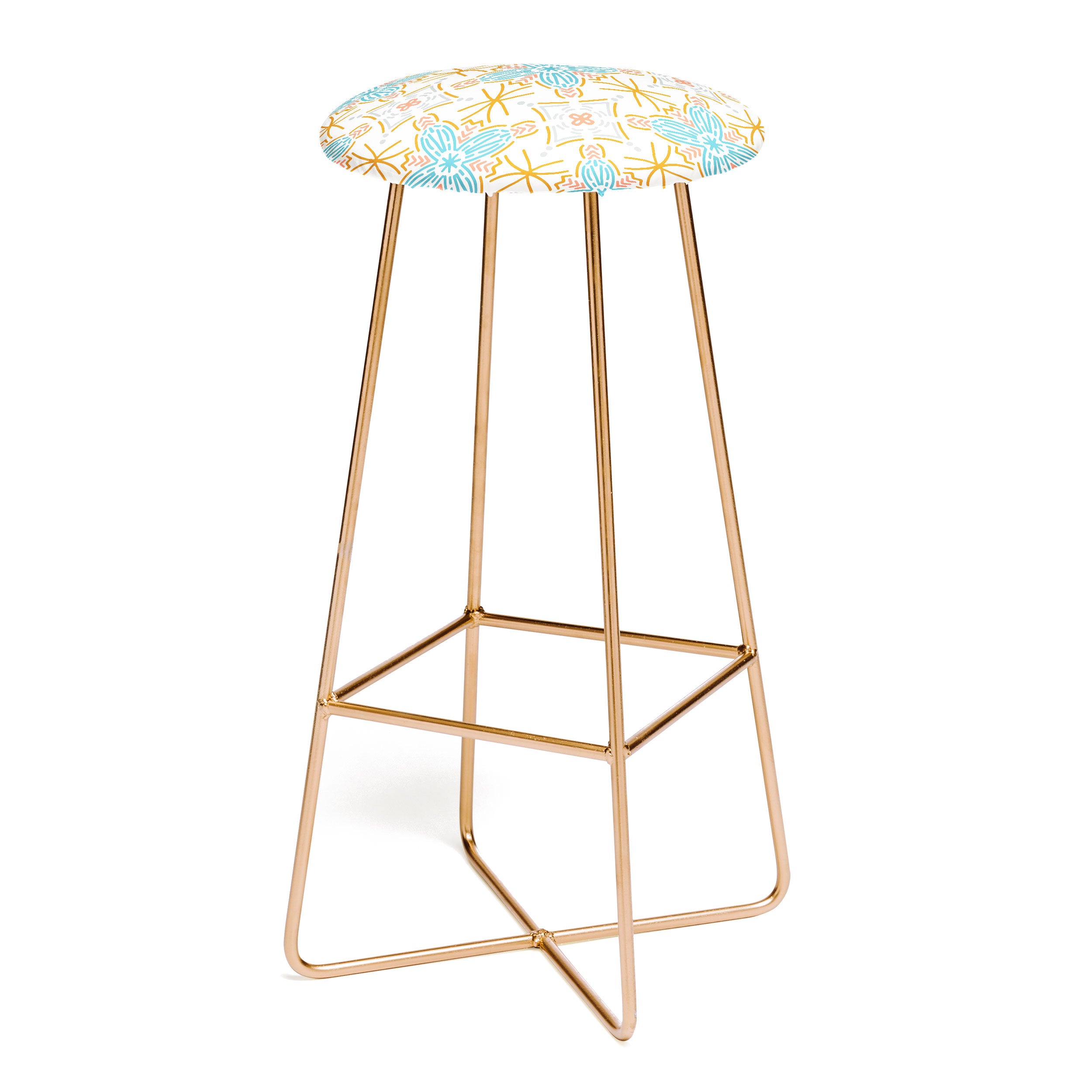 Saddle up, partner. The Deny Designs bar stool is the space-conscious and design-forward way to add seating to any space. Sleek, gently curved steel aston legs (available in black or gold) combine with the faux-leather upholstery for a modern yet unassuming stool. They feature a conveniently placed foot rest so your legs aren't left dangling, plus, you can select from our curated array of designs to match whatever your taste may be. And the best part? Every purchase pays the artist who designed it—supporting creativity worldwide.