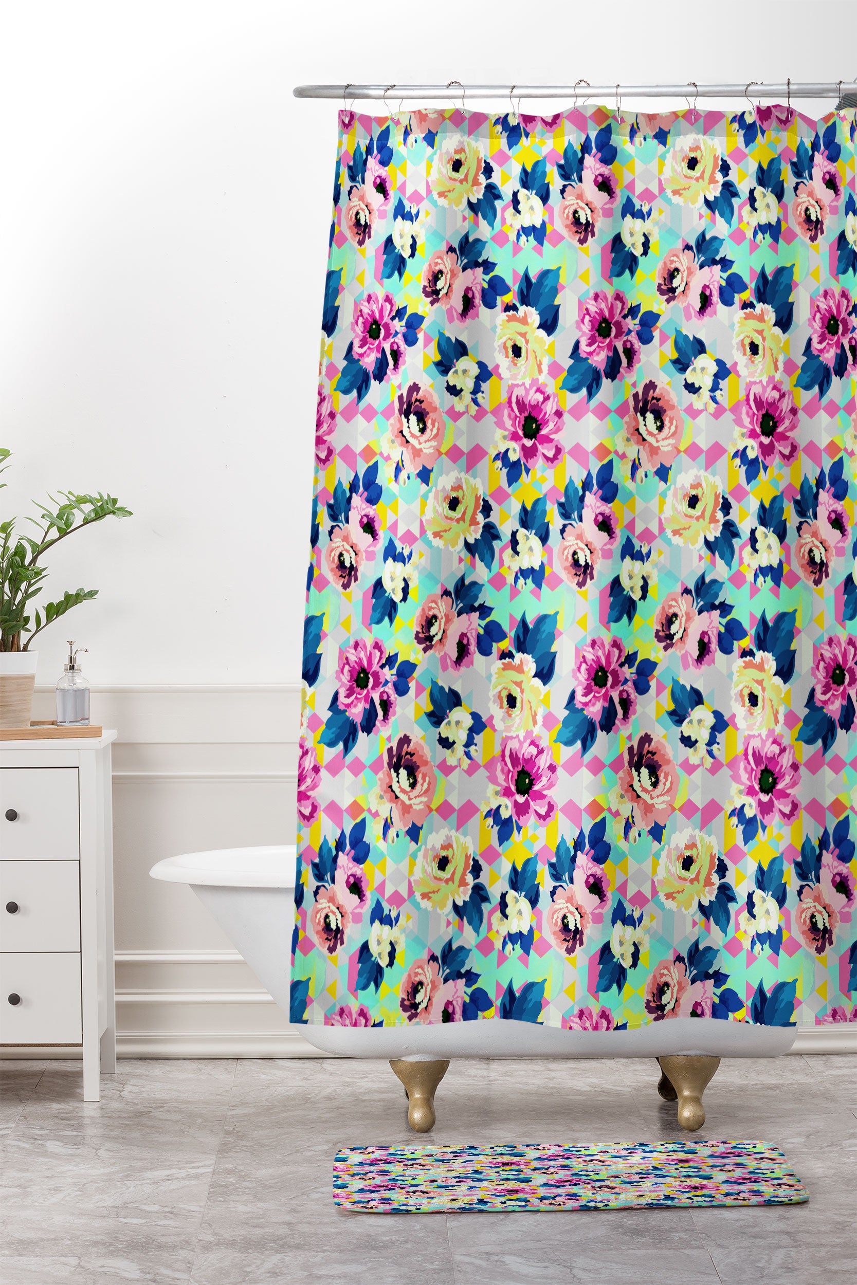 Marta Barragan Camarasa Pattern blooms along the geometry Shower Curtain And Mat