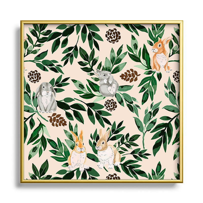 Marta Barragan Camarasa Rabbits in the green forest Square Metal Framed Art Print