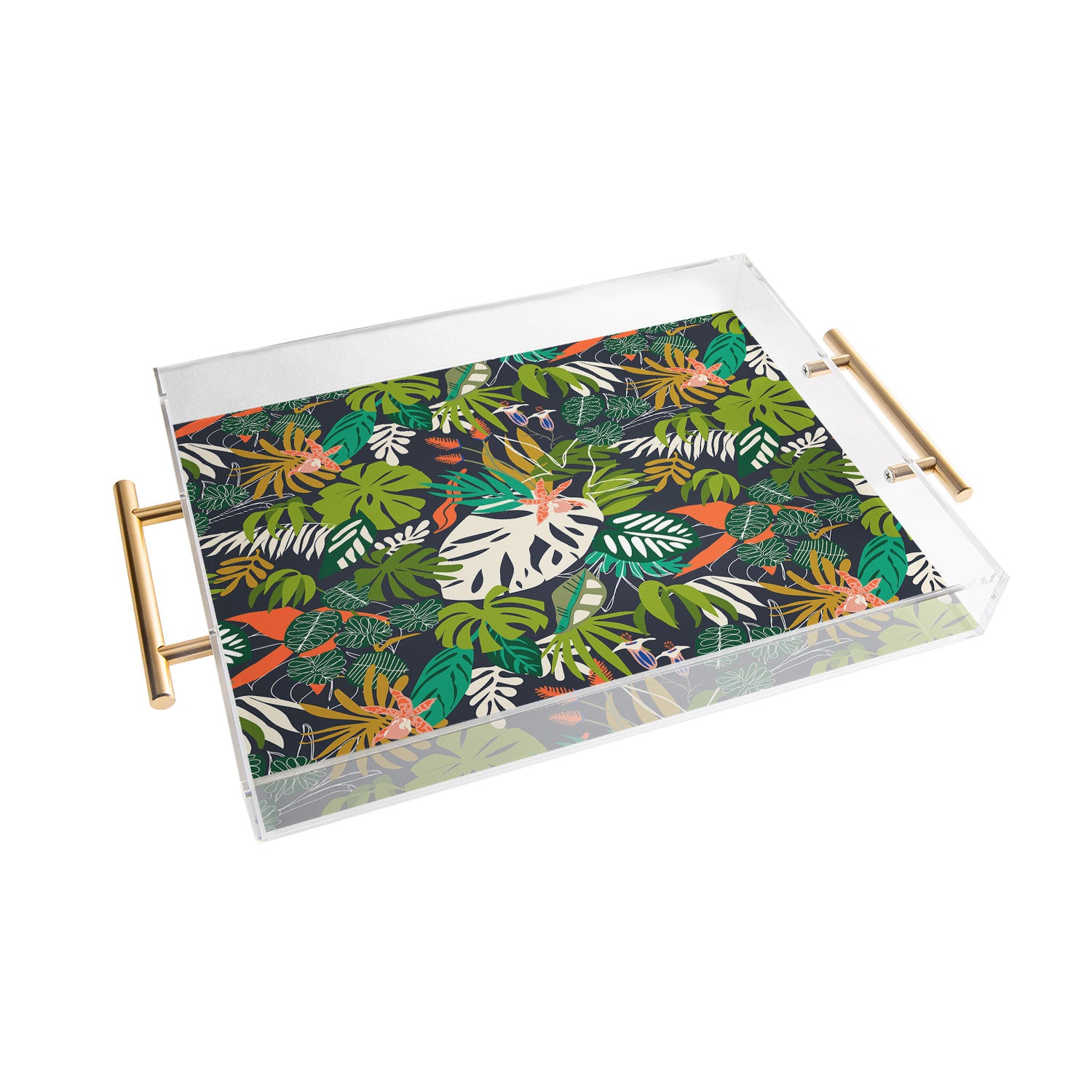 Tray chic. The Deny Designs acrylic trays come in a small and medium-size to accommodate all your countertop organizational needs. Featuring designs from our curated selection on the bottom panel, the acrylic trays can adapt to whatever decor style you love and the see-through side panels give them a modern flair. The medium-sized tray even comes with handles, allowing you to take it around the house for nail supplies or, dare we say, breakfast in bed! And the best part? Every purchase pays the artist who designed it—supporting creativity worldwide.