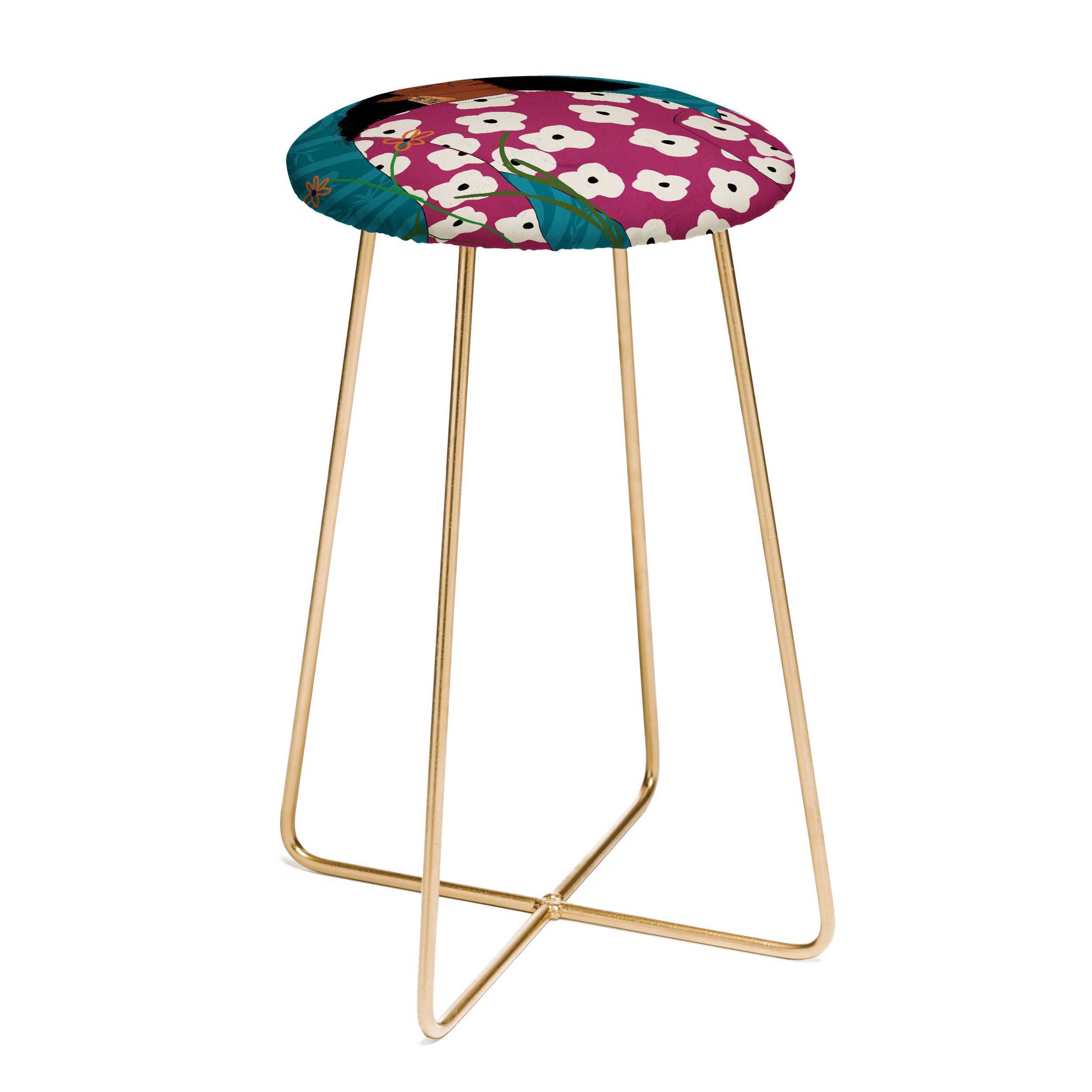 Saddle up, (little) partner. The Deny Designs counter stool uses all the space-conscious, design-forward styling of the bar stool, but with a slightly shorter frame. Sleek, gently curved steel aston legs (available in black or gold) combine with the faux-leather upholstery for a modern yet unassuming stool. Select from our curated array of designs to match whatever your taste may be. And the best part? Every purchase pays the artist who designed it—supporting creativity worldwide.