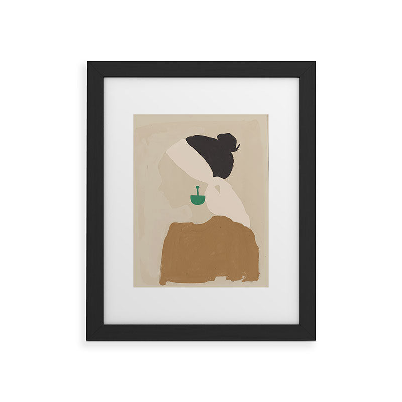 Megan Galante Minimalist Woman with Green Ea Framed Art Print