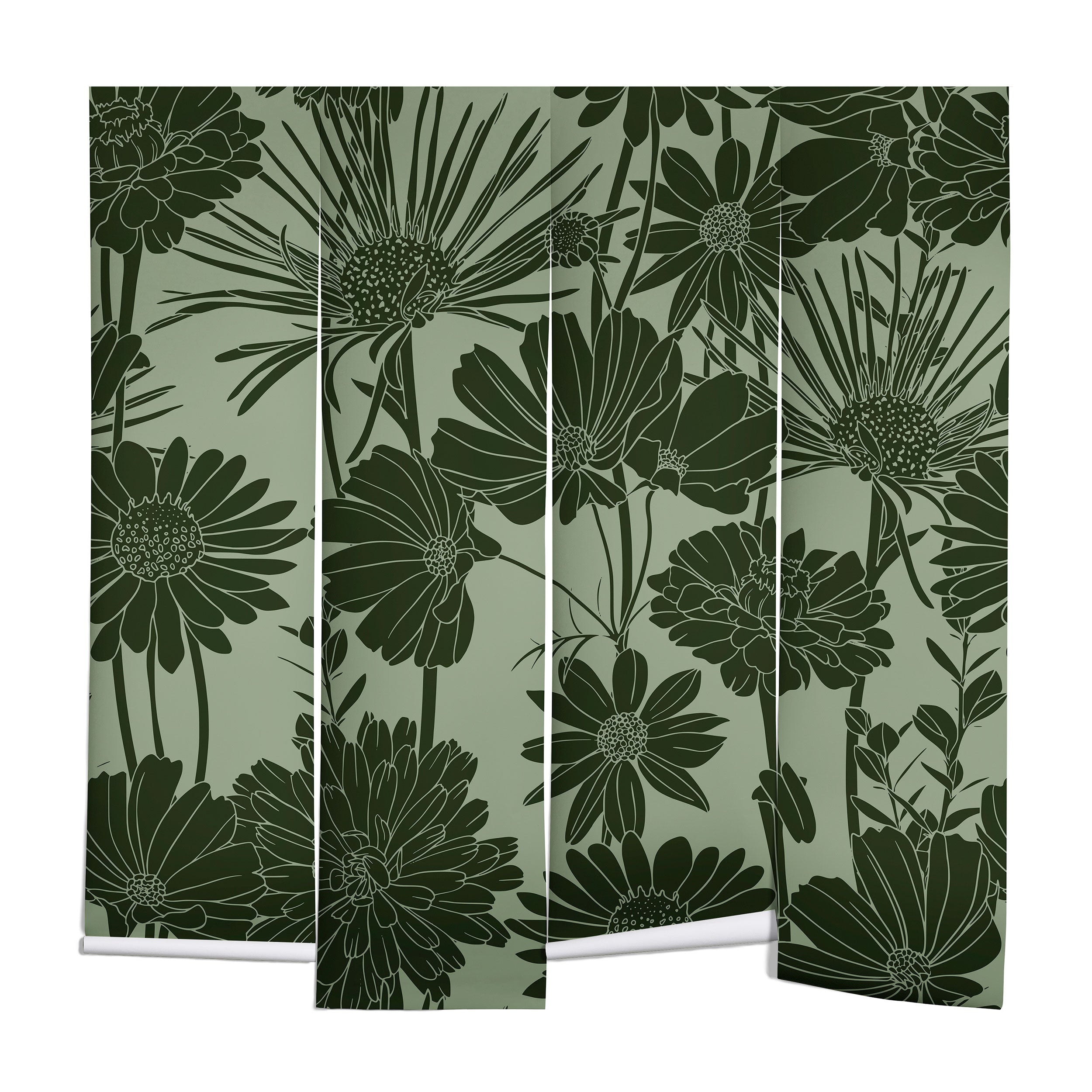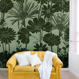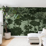 Megan Morris Floral Prints Dark Green Wall Mural