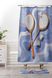 mele_artanddesign Badminton Retro Swirls Blue Shower Curtain And Mat