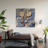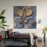 mele_artanddesign Badminton Retro Swirls Blue Wood Wall Mural