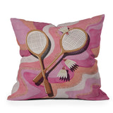 mele_artanddesign Badminton Retro Swirls Pink Outdoor Throw Pillow
