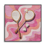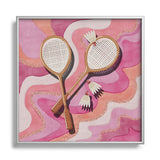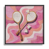 mele_artanddesign Badminton Retro Swirls Pink Square Metal Framed Art Print