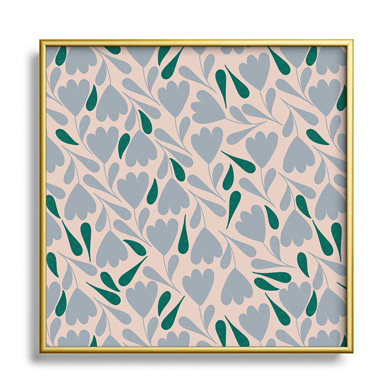 Menina Lisboa Blue Green Flowers Square Metal Framed Art Print