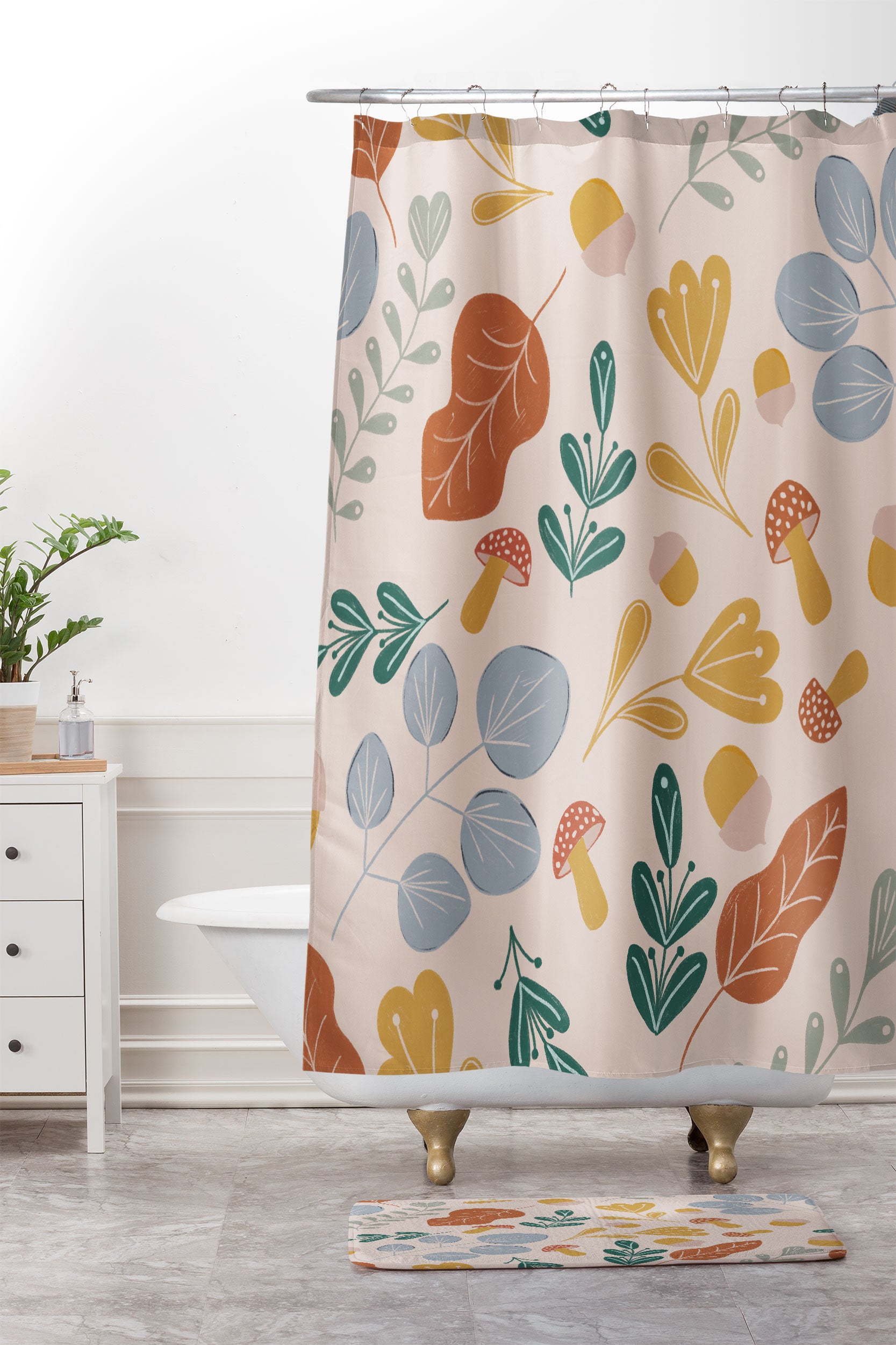 Menina Lisboa Colorful Fall Shower Curtain And Mat