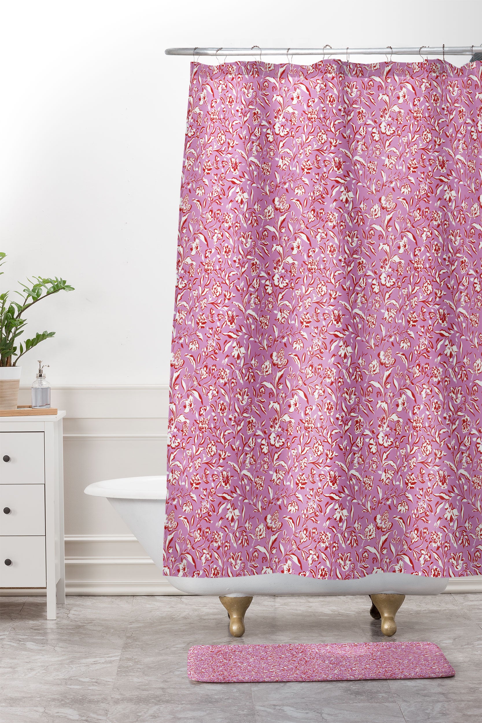 Mieken Petra Designs Painterly Florals Red Orchid Shower Curtain And Mat