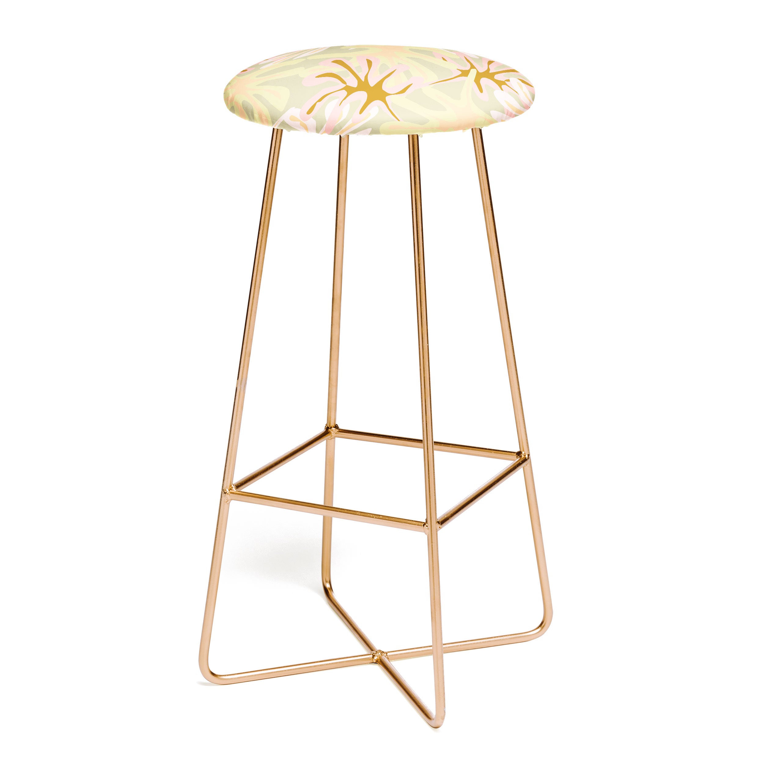 Saddle up, partner. The Deny Designs bar stool is the space-conscious and design-forward way to add seating to any space. Sleek, gently curved steel aston legs (available in black or gold) combine with the faux-leather upholstery for a modern yet unassuming stool. They feature a conveniently placed foot rest so your legs aren't left dangling, plus, you can select from our curated array of designs to match whatever your taste may be. And the best part? Every purchase pays the artist who designed it—supporting creativity worldwide.