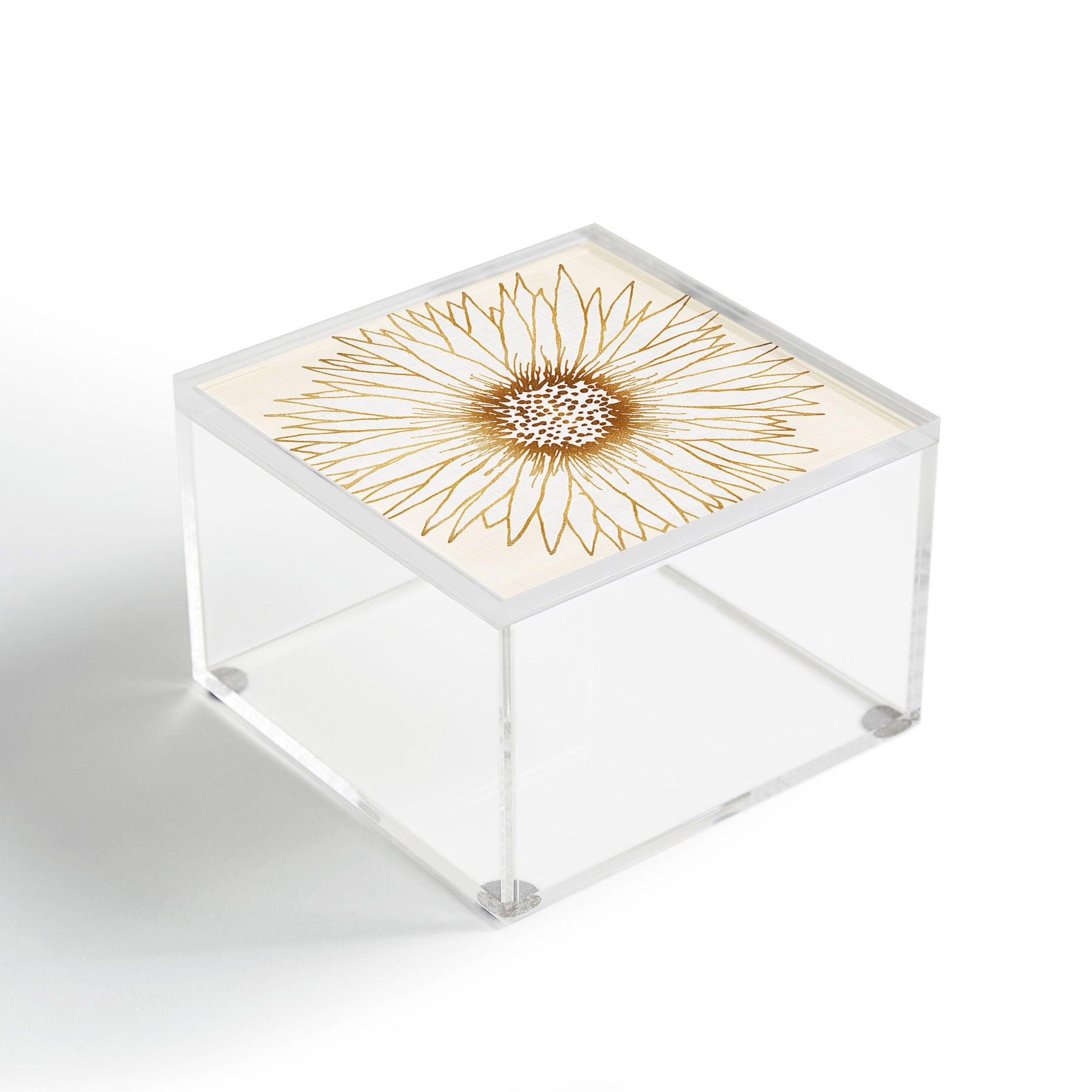 Modern Tropical Gold Sunflower Acrylic Box