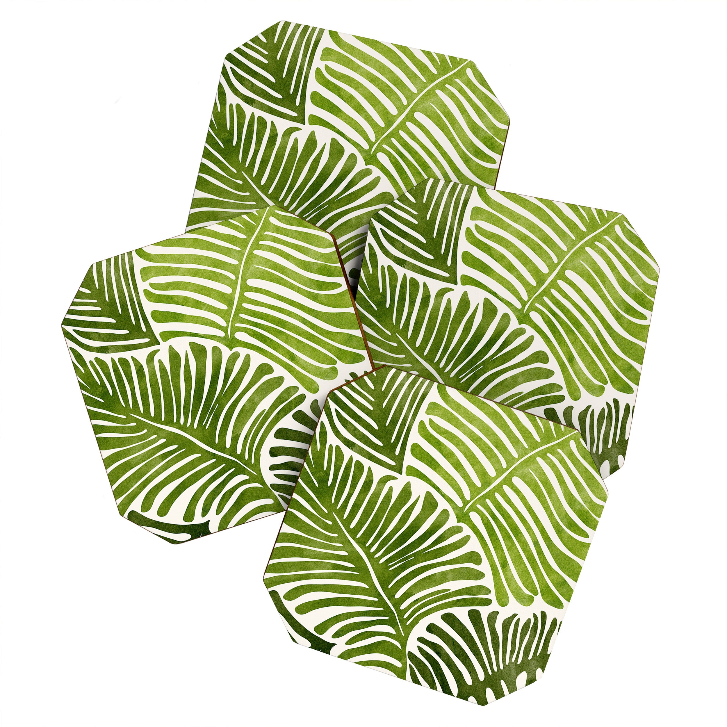 Modern Tropical Summer Fern Simple Modern Watercolor Coaster Set