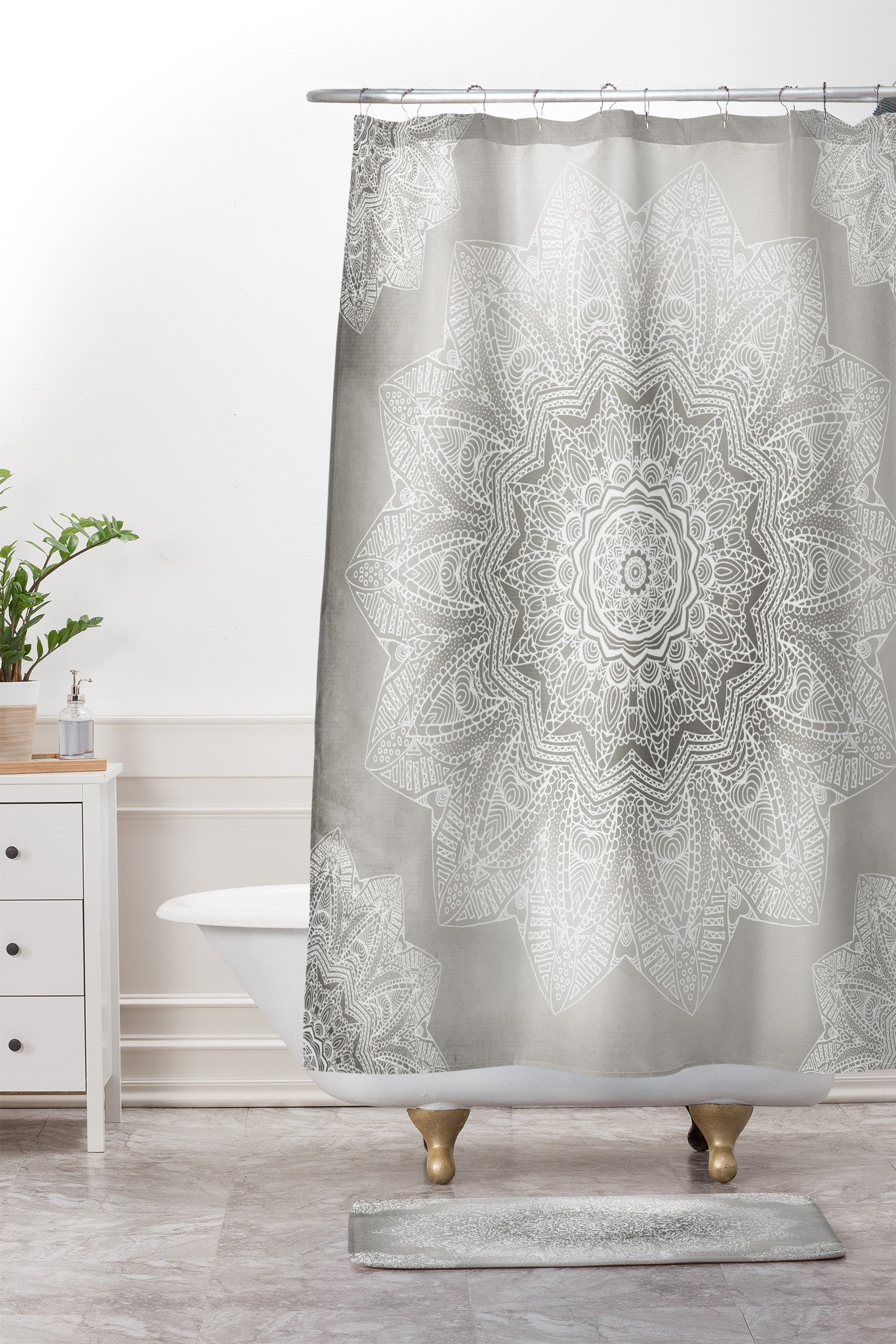 Monika Strigel SERENDIPITY LIGHT GREY Shower Curtain And Mat