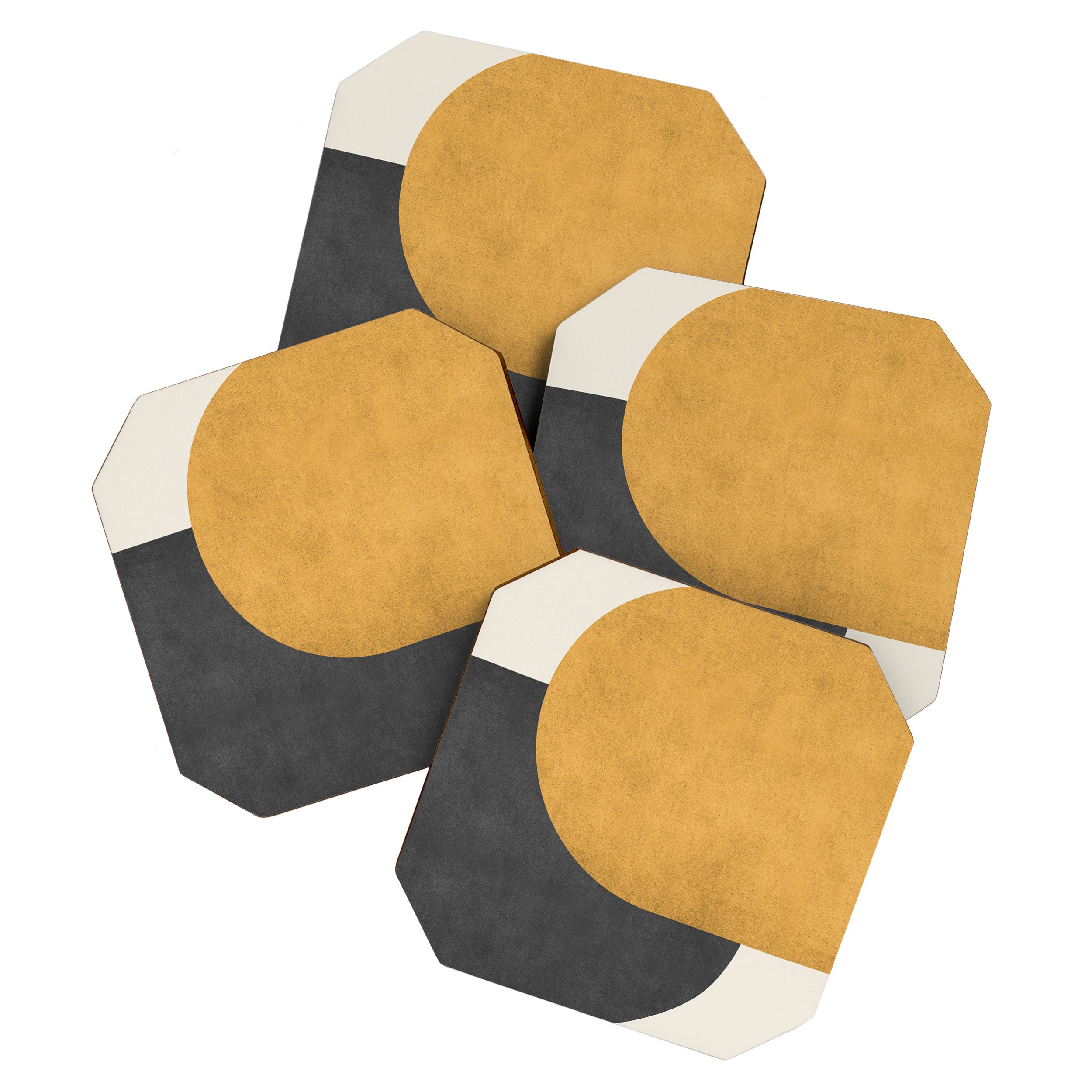 MoonlightPrint Halfmoon Colorblock Gld Blck Coaster Set