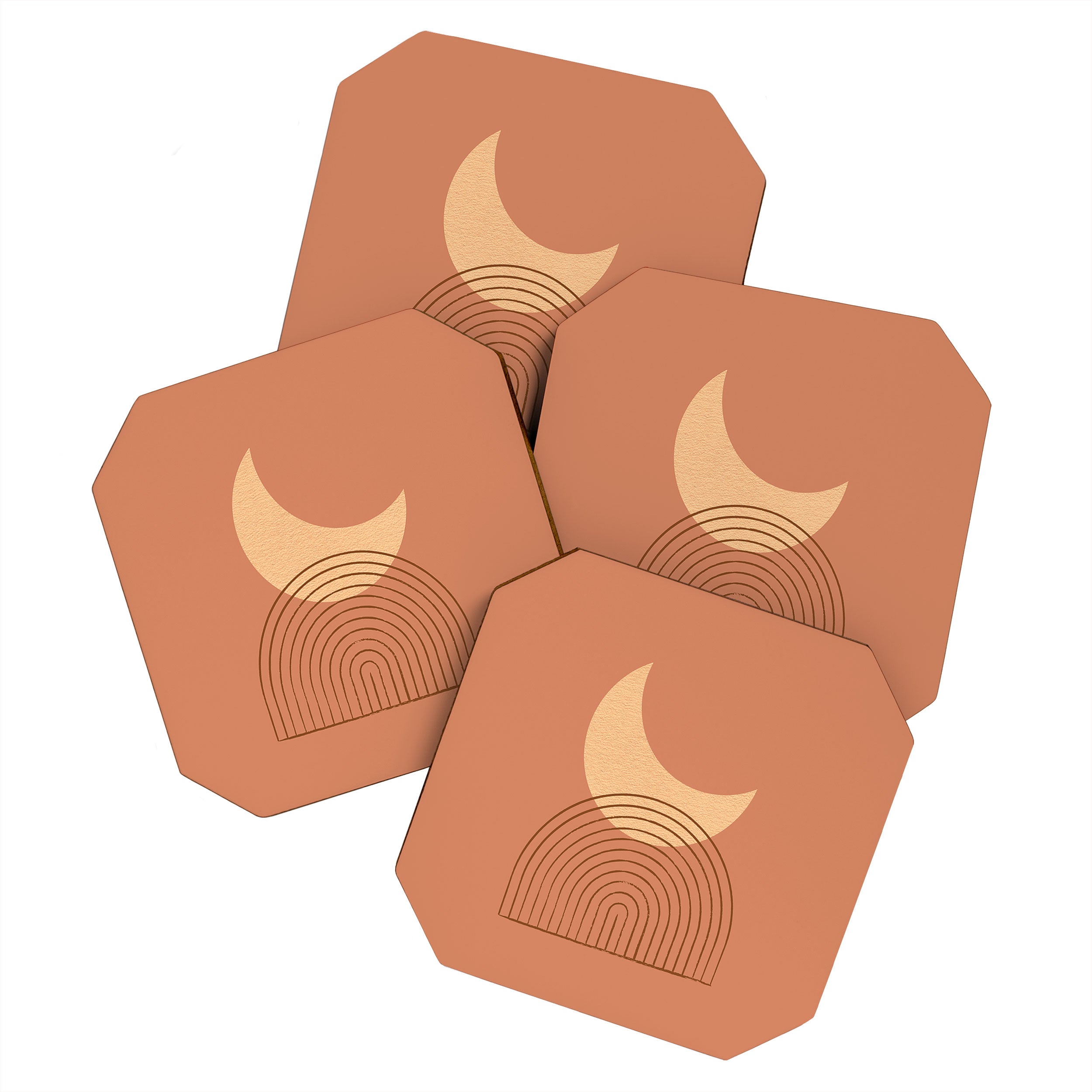 MoonlightPrint Moon Mountain Terra Orange Coaster Set