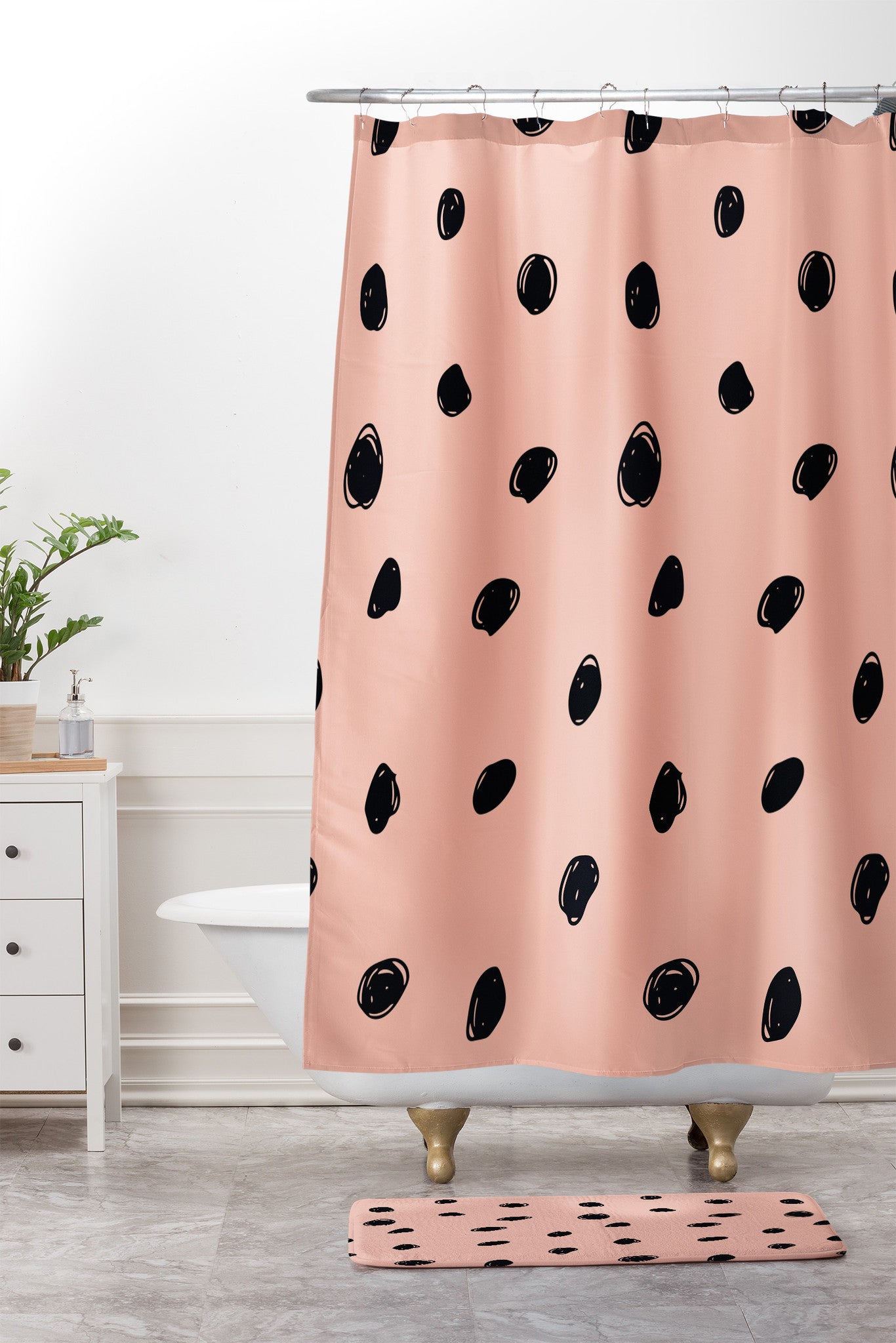 Morgan Kendall pink and black scribbles Shower Curtain And Mat