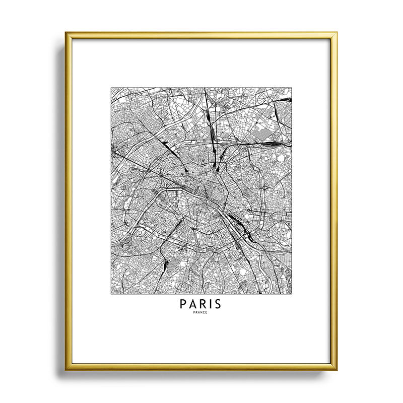 multipliCITY Paris White Map Metal Framed Art Print