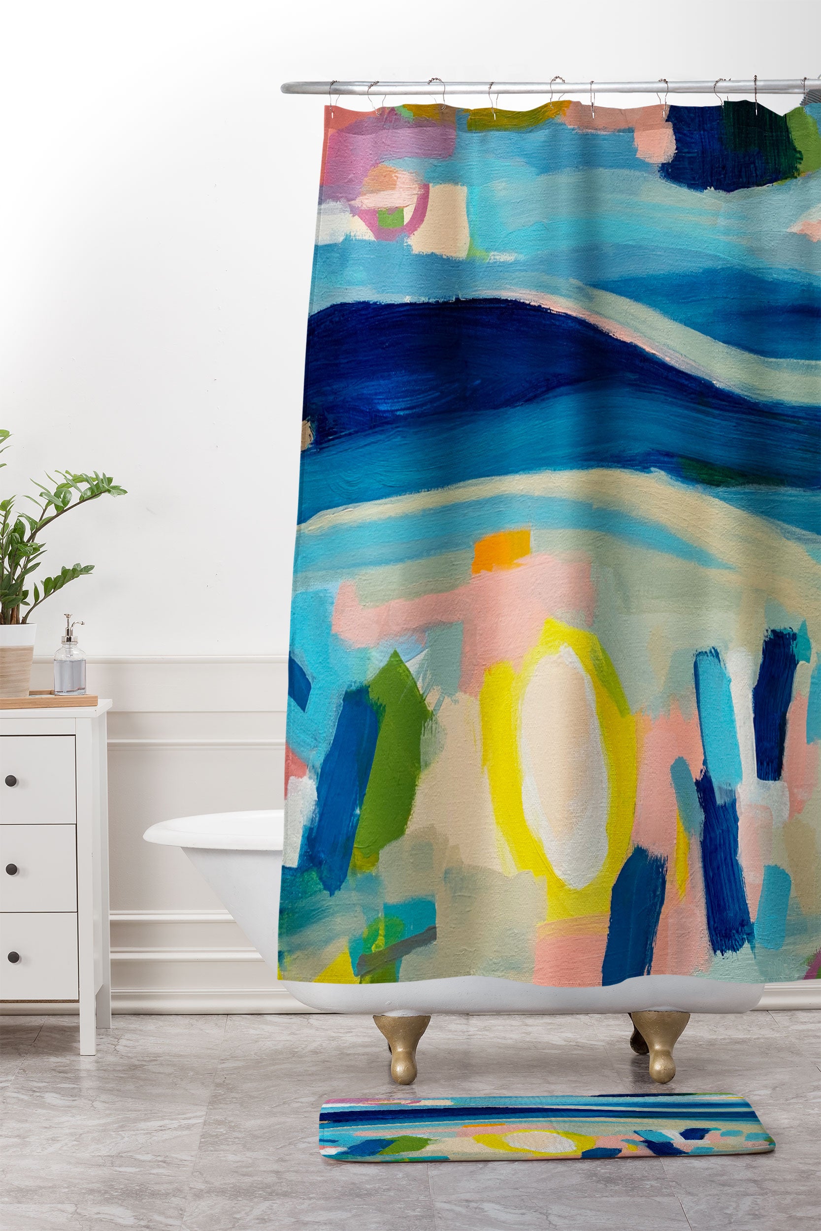 Natalie Baca Rolling Foothills Shower Curtain And Mat