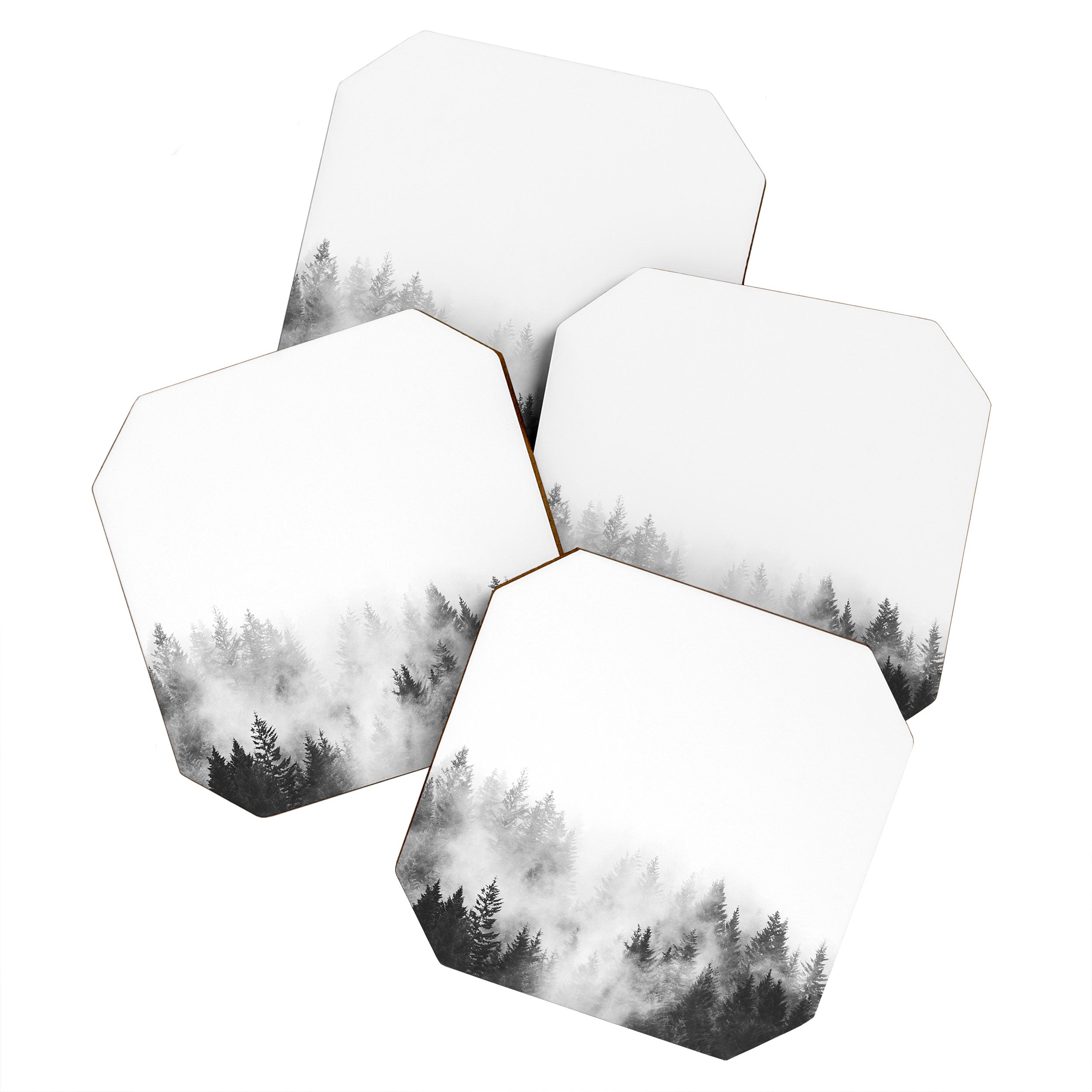 Nature Magick Foggy Trees Black and White Coaster Set