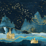 Nature Magick Teal and Gold Mountain Stars Wall Mural