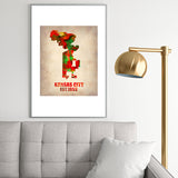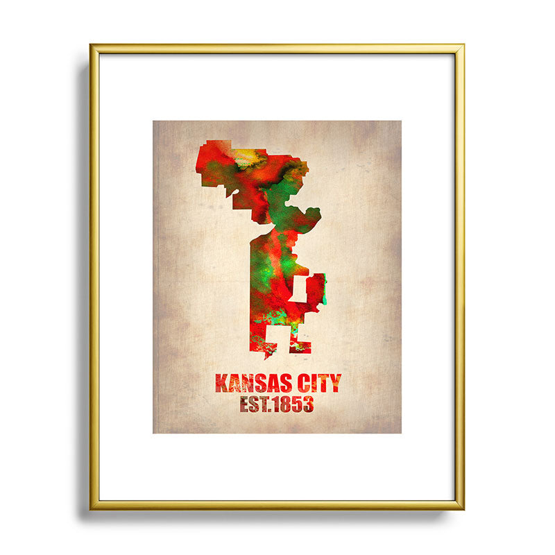Naxart Kansas City Watercolor Map Metal Framed Art Print