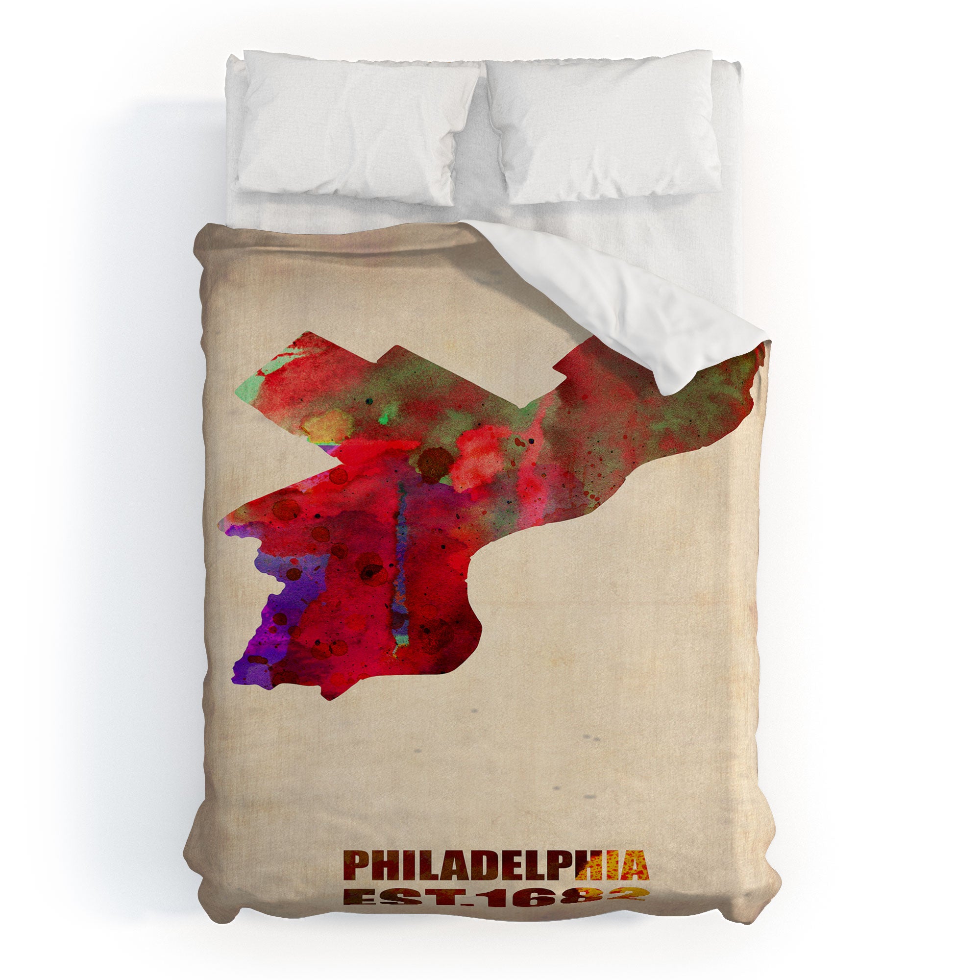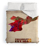 Naxart Philadelphia Watercolor Map Duvet Cover