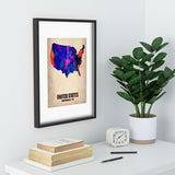 Naxart USA Watercolor Map 1 Recessed Framing Rectangle