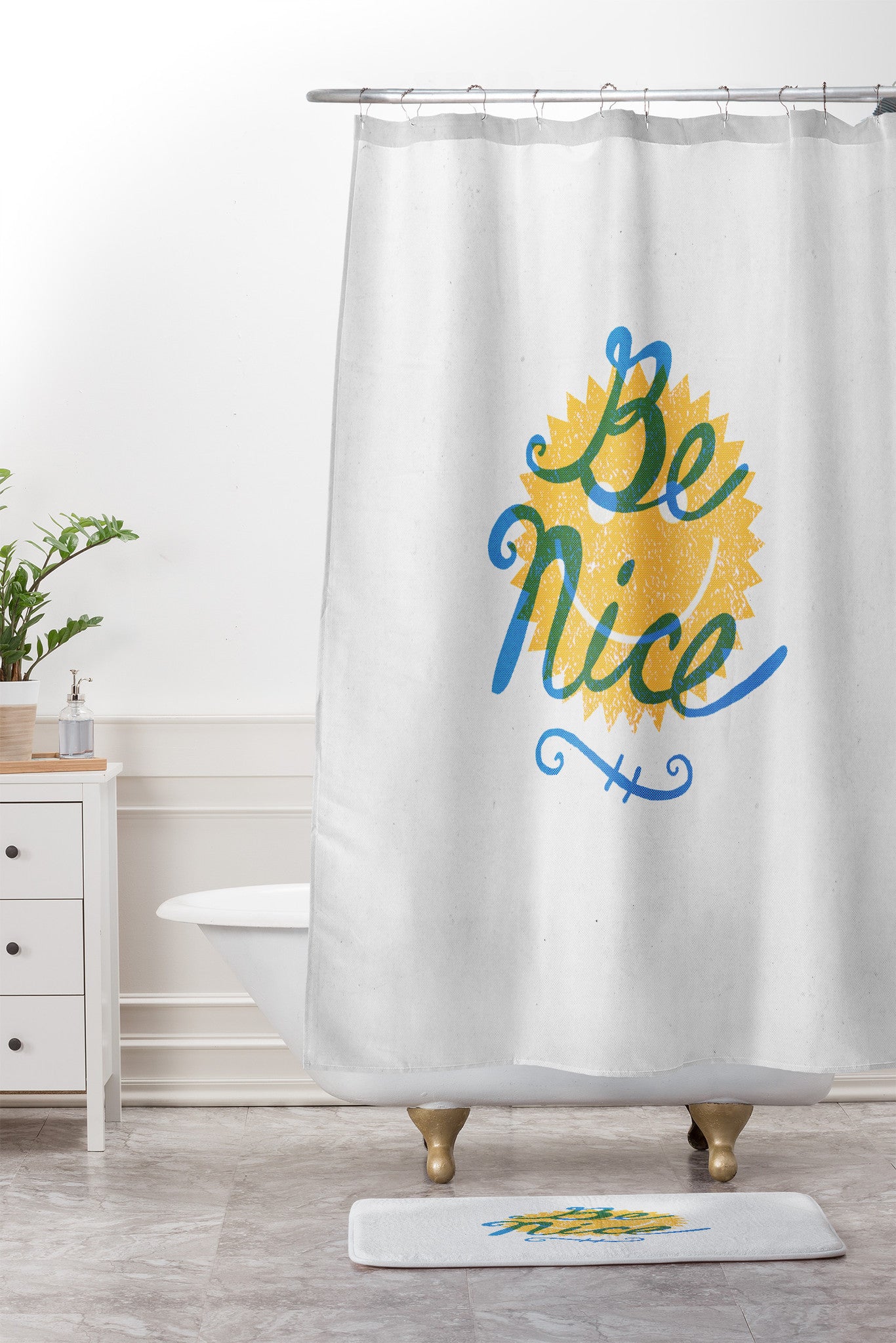 Nick Nelson Be Nice Shower Curtain And Mat