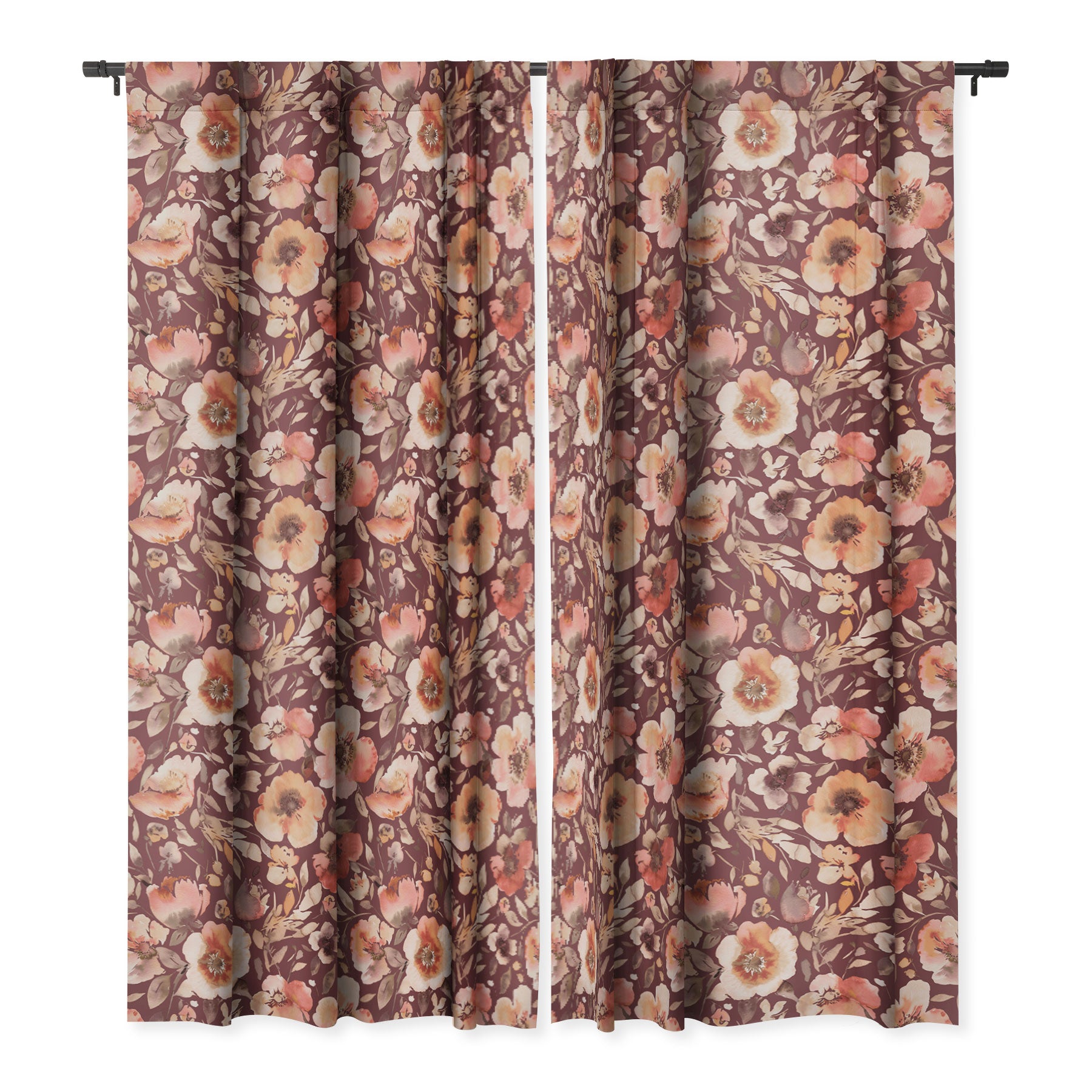 Ninola Design Artistic poppies Autumn Dark Red Blackout Window Curtain