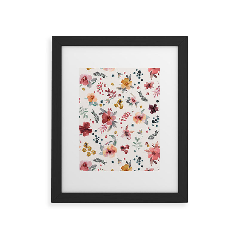 Ninola Design Autumn floral Red holiday Framed Art Print