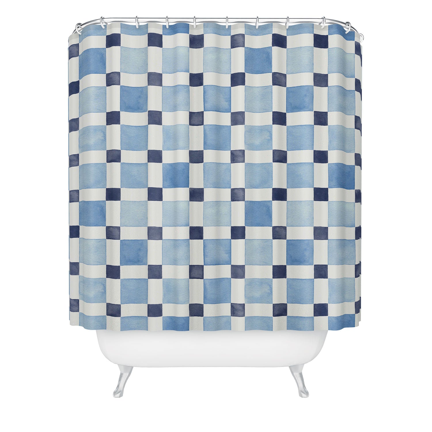 Ninola Design Checkerboard Mosaic Squares Blue Shower Curtain