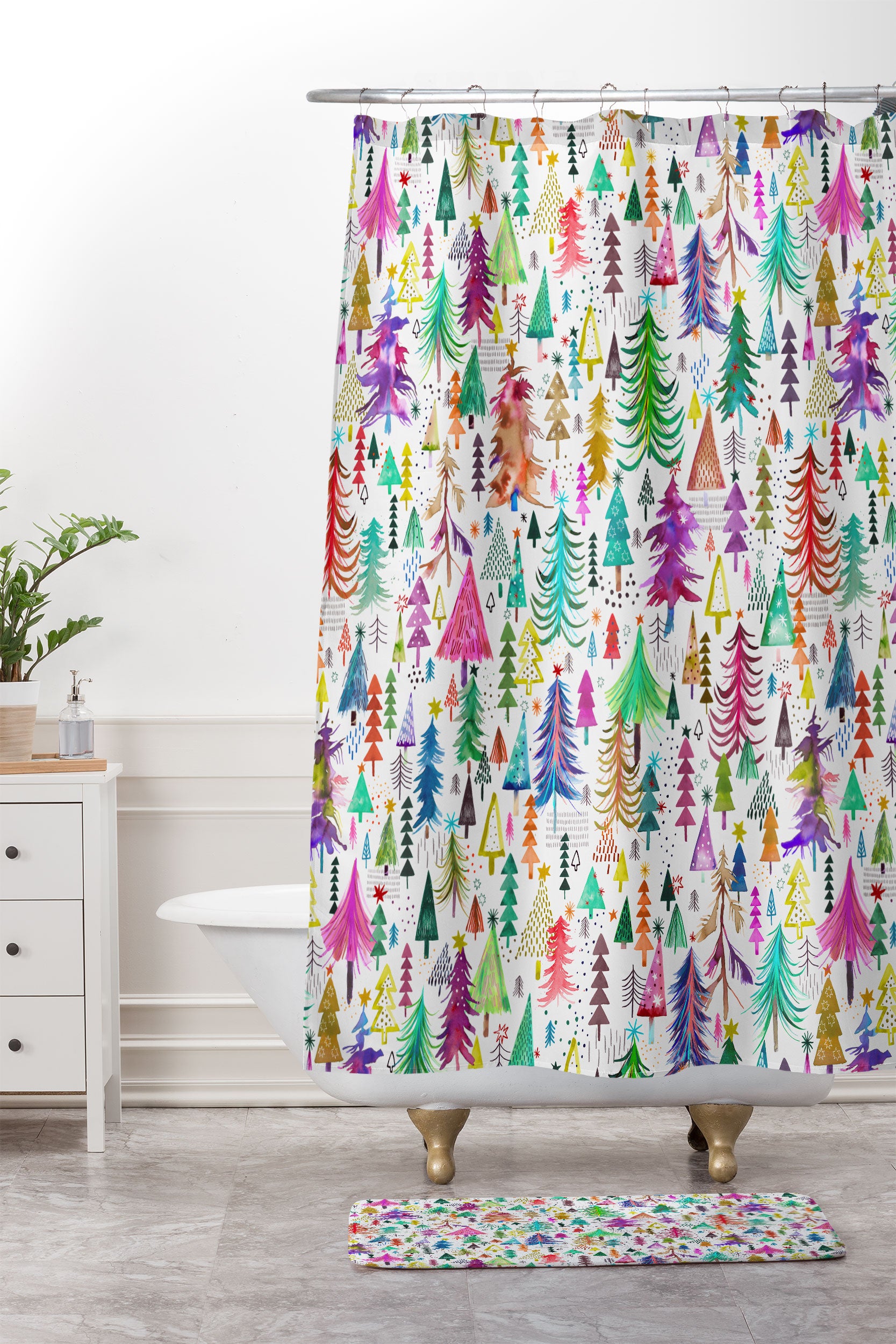 Ninola Design Christmas Trees Simply Modern Shower Curtain And Mat