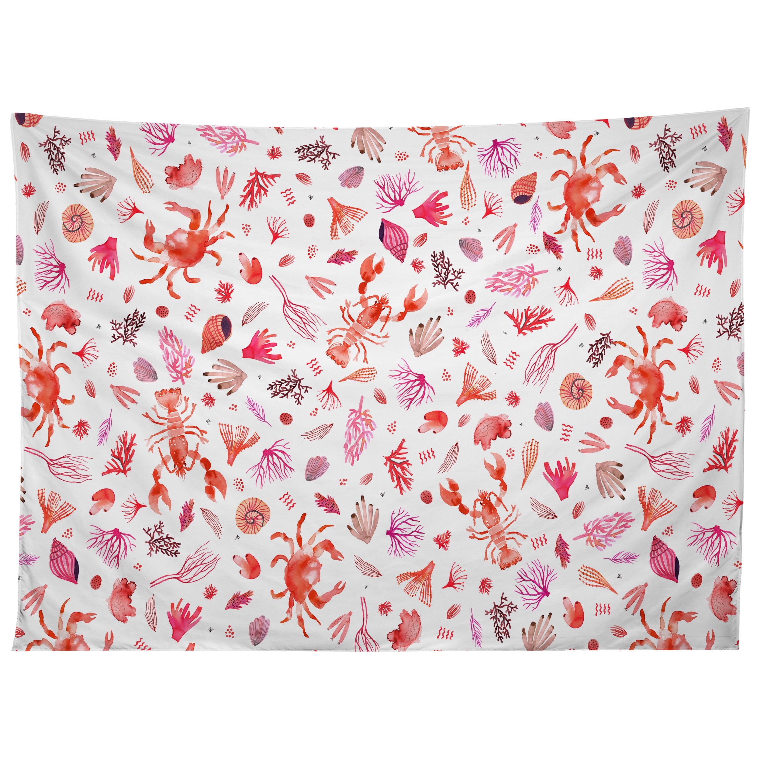 Ninola Design Crabs Lobsters Coastal Coral Reef Red Tapestry