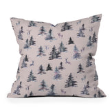 Ninola Design Deers and trees forest Pink Outdoor Throw Pillow