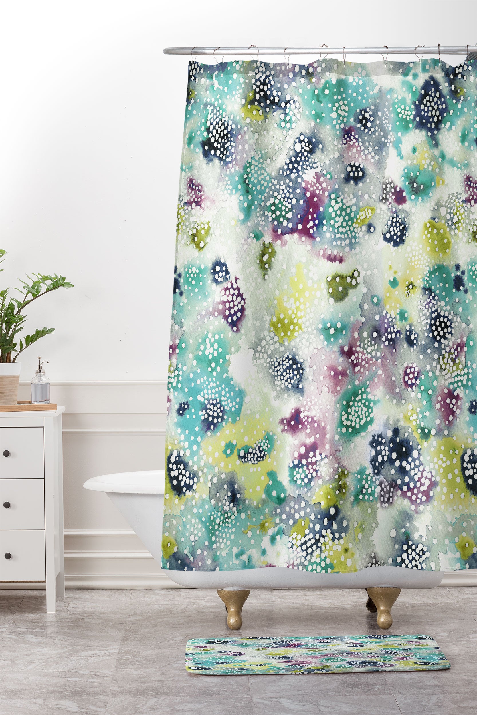 Ninola Design Experimental Green Surface Shower Curtain And Mat