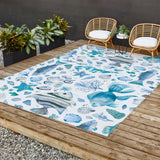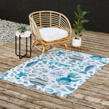 Ninola Design Fishes Shells Sea Horse Ocean Coastal Marine Blue Outdoor Rug