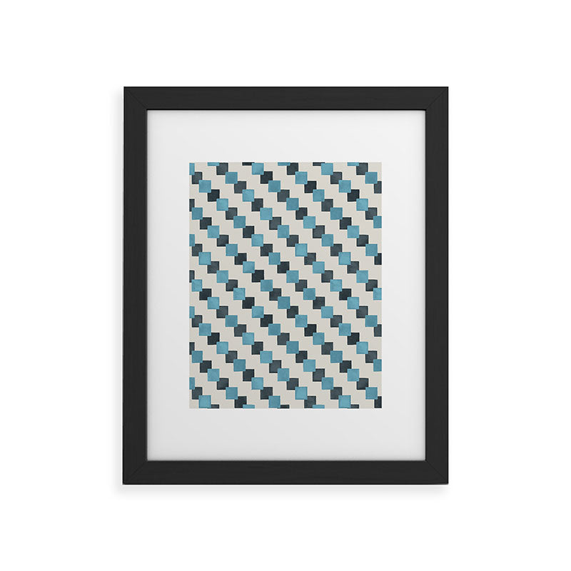 Ninola Design Geometric Watercolor Blue Navy Checkered Tiles Framed Art Print