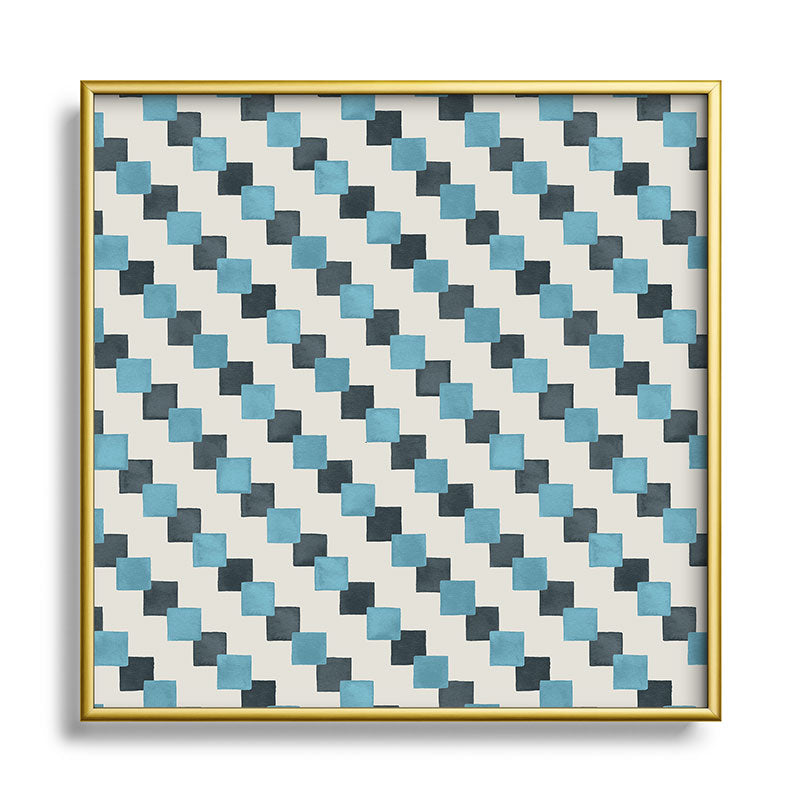Ninola Design Geometric Watercolor Blue Navy Checkered Tiles Square Metal Framed Art Print