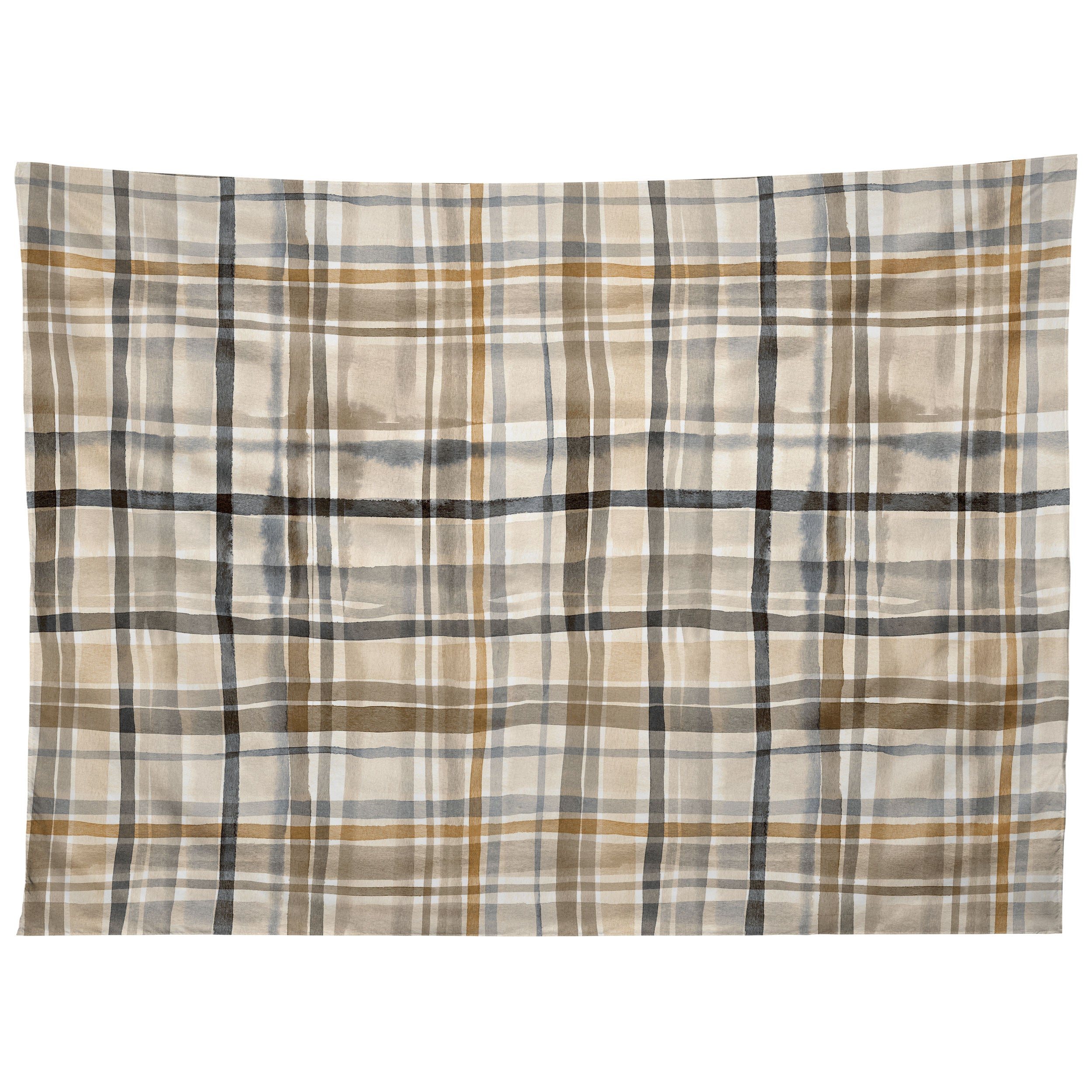 Ninola Design Gingham Watercolor Stripes Gold Tapestry