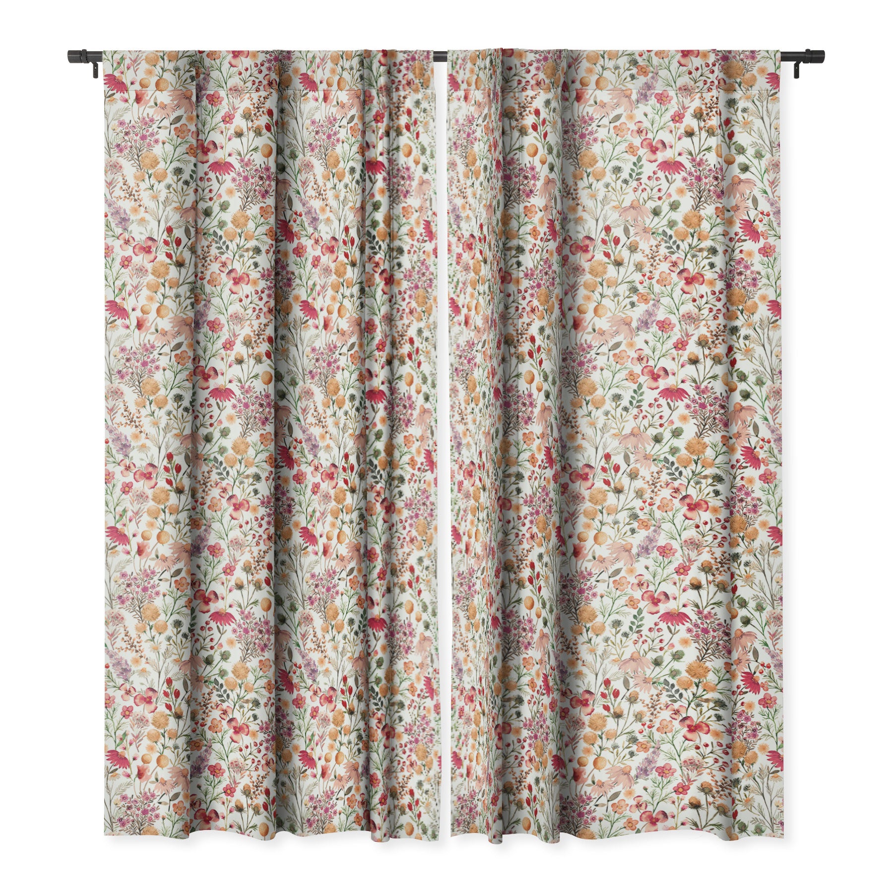 Ninola Design Meadow Perennial Botanical Red Blackout Window Curtain