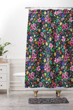 Ninola Design Millefleurs Multicolor Black Shower Curtain And Mat