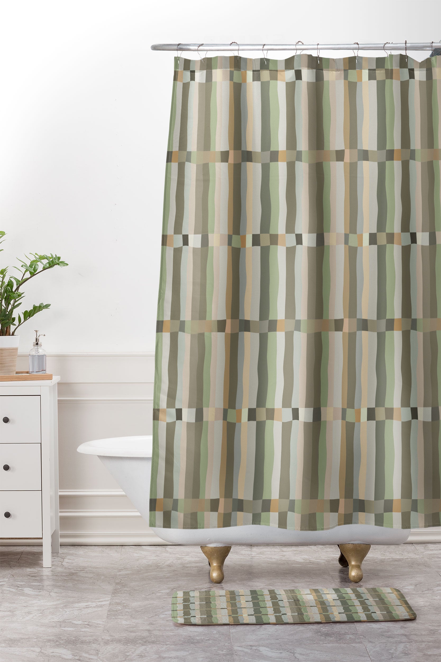 Ninola Design Modern Stripes Green Bog Shower Curtain And Mat